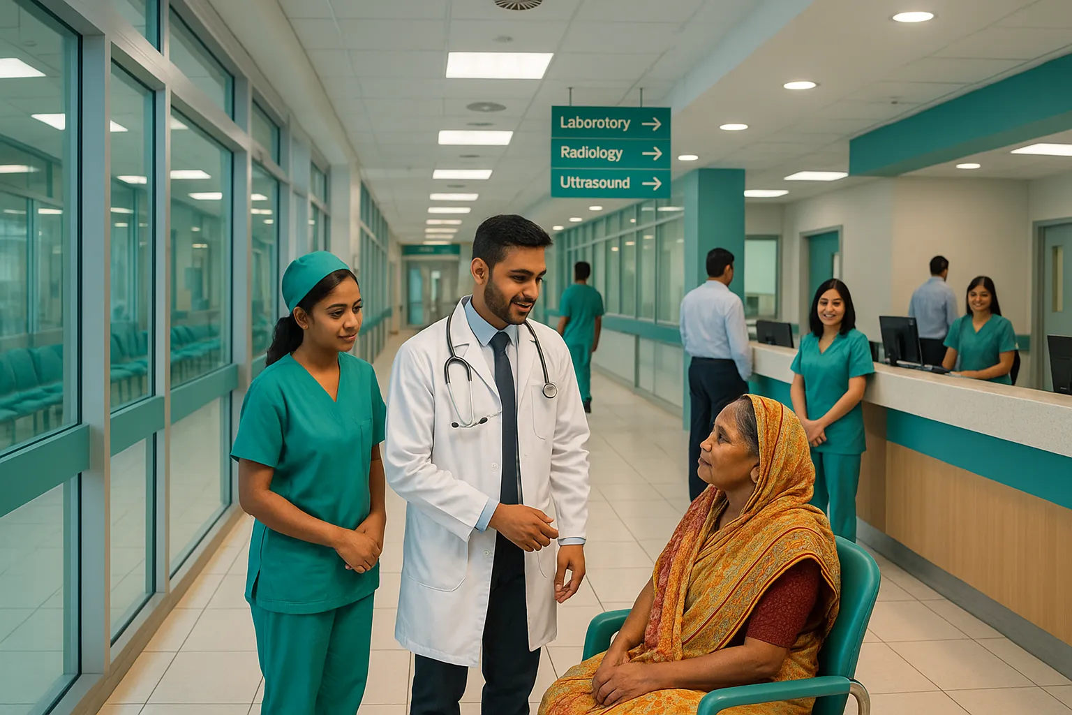 Hospital Diagnostic Services include laboratory investigations conducted under established hygiene, infection prevention, and quality assurance standards. Patient assistance systems support accessibility, appointment scheduling, and report collection.